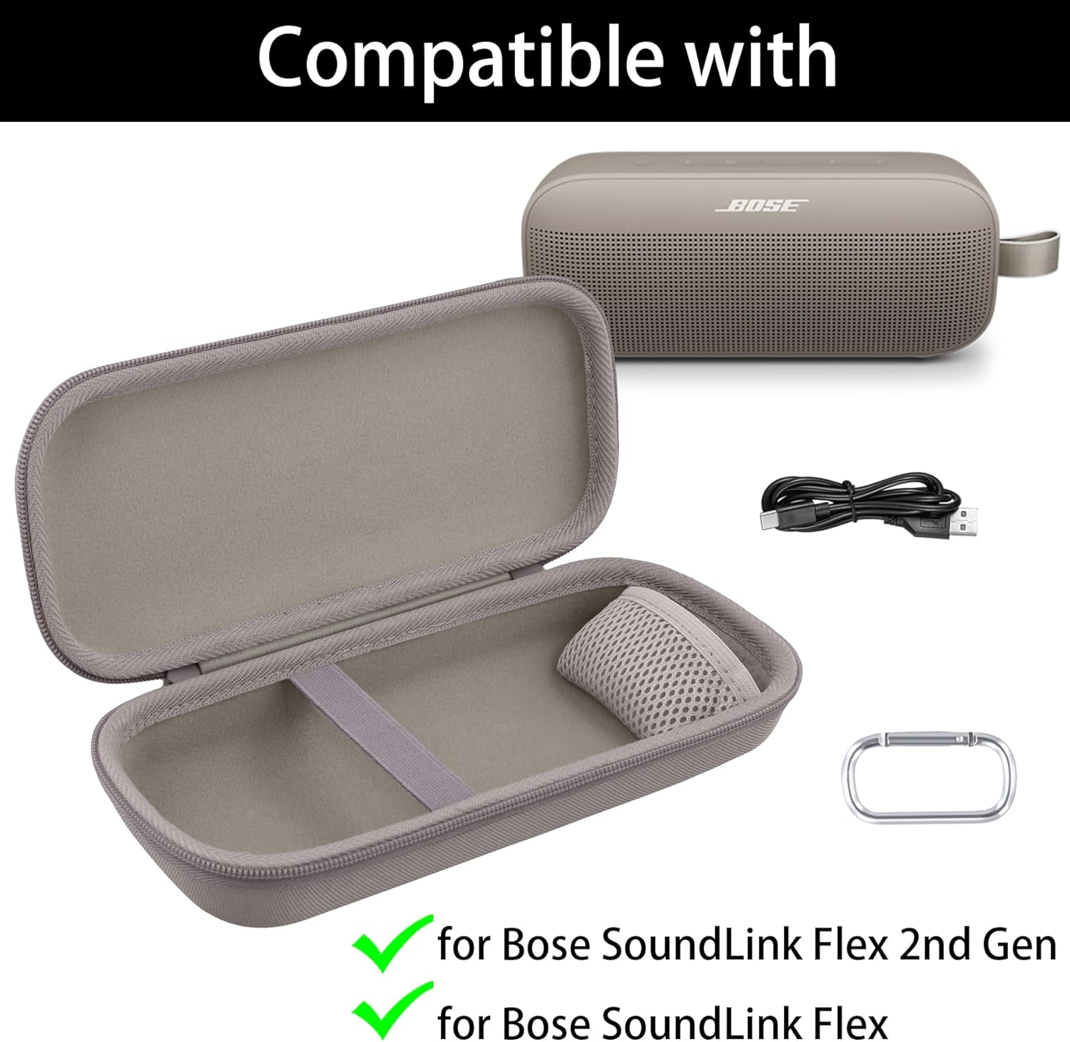 Aenllosi for Bose New SoundLink Flex 2nd Gen/Bose SoundLink Flex Bluetooth Portable Speaker Hard Carrying Case+Silicone Cover Case, Sandstone